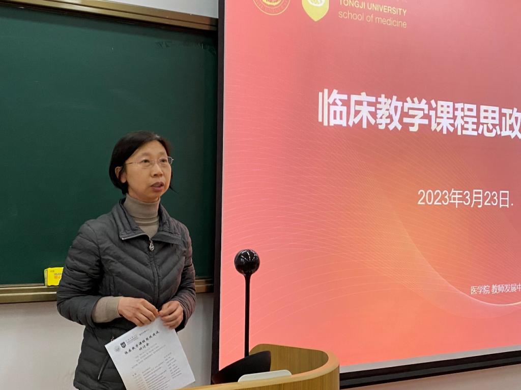 在汇报交流环节,附属第十人民医院余震老师汇报了医学生临床实习和见习中的思政教学情况;附属同济医院李颖老师从课程设计、教师培训、课程师资队伍建设等多方面分享了临床医学理论课教学中课程思政如何融入的经验;附属东方医院俞海萍老师就多学科情景模拟教学的思政设计进行汇报;附属上海市肺科医院陈娴秋老师以OBE课程的呼吸系统模块为例,谈了结合肺炎知识点的思政教学设计;附属第一妇婴保健院成星老师交流了住院医师规范化培训中的立德树人教育;附属杨浦医院葛许华老师结合《全科医学概论》教学谈如何加强其中的课程思政设计;康复学院(筹)的胡佳老师交流了康复治疗学专业教学整体的课程思政情况,着重介绍了如何培养教师的课程思政能力;护理学院(筹)曾莉老师交流了护理专业的课程思政建设。