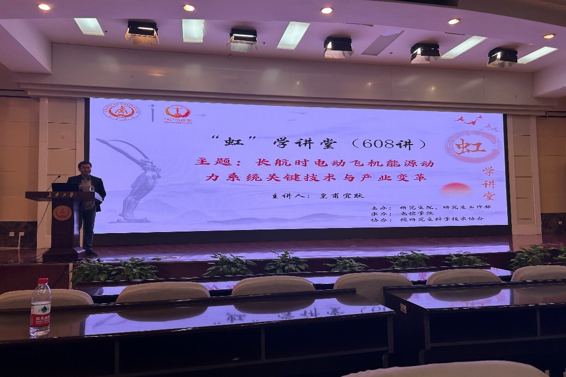 12月6日下午,由研究生院、研究生工作部主办,beat365英国官网网站承办,校研究生科学技术协会协办的“虹”学讲堂第608讲在南校区北院学术交流中心顺利举行。西北工业大学皇甫宜耿教授作了题为“长航时电动飞机能源动力系统关键技术与产业变革”的报告,beat365英国官网网站周熙炜教授主持,相关学院共180余名师生参加讲座。