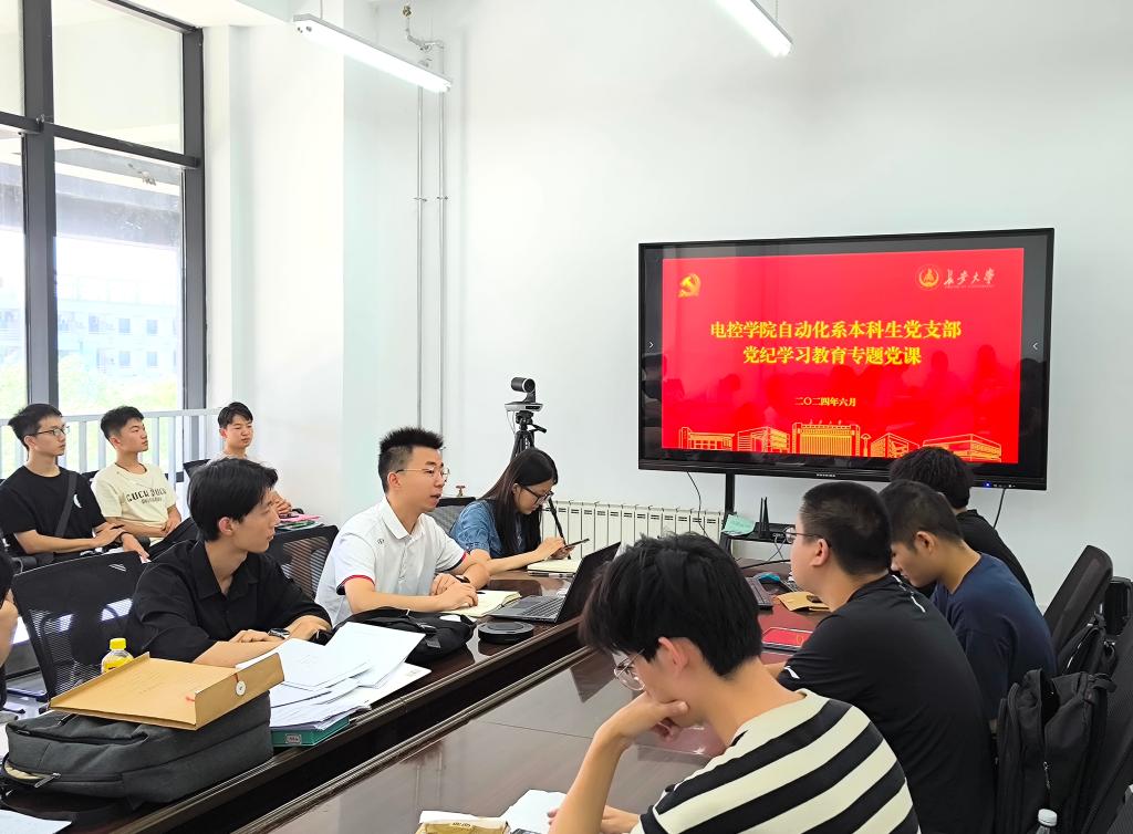 6月24日上午,beat365英国官网网站自动化系本科生党支部在明德园智通大厦学院319会议室开展党支部书记讲党纪学习教育专题党课活动。党支部全体党员参加党课,党课由党支部书记高朋举主讲。