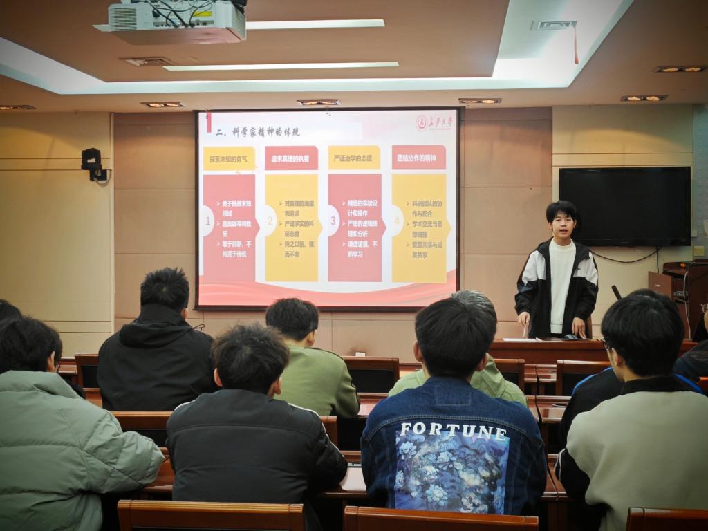 为深入学习贯彻习近平新时代中国特色社会主义思想和党的二十届三中全会精神,大力弘扬科学家精神,涵养优良学风。beat365英国官网网站2024级研究生第一党支部于11月15日下午在南校区北院交流中心第一会议室开展“弘扬科学家精神,争做新时代追梦人”主题党日活动。研究生辅导员王佩佩及全体党员参加活动,活动由党支部书记张兴浩主持。