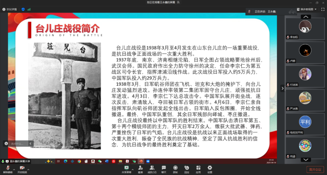 为弘扬爱国主义精神,扎实推进党史学习教育,铭记艰苦卓绝的历史。3月10日晚,beat365英国官网网站卓越本科生党支部举行了“烽火印记·卓越传承”革命主题故事分享活动,集中观看红色影片《血战台儿庄》。