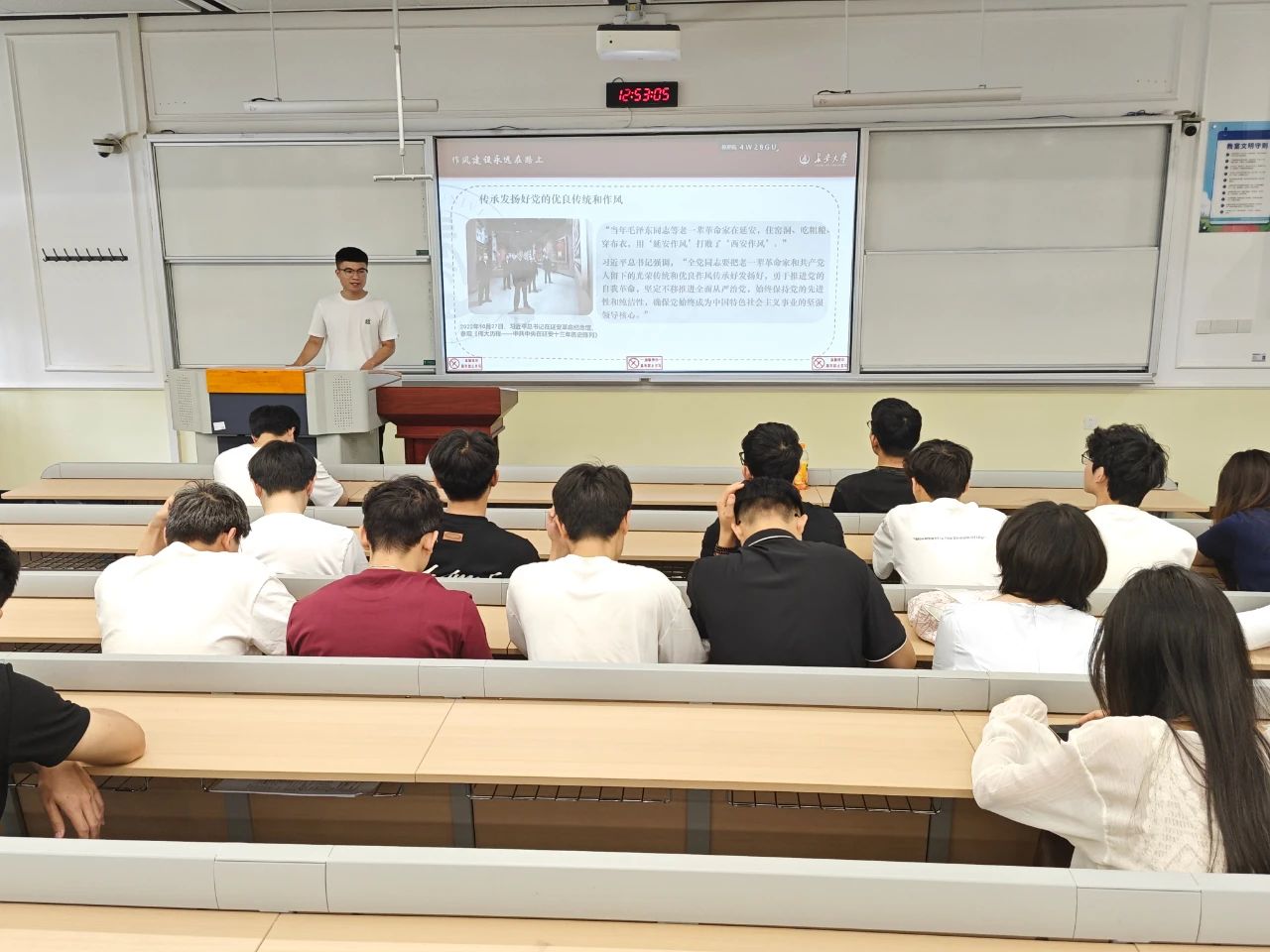 为深入学习贯彻中央八项规定精神,强化党员纪律意识,beat365英国官网网站2024级研究生第一党支部于2025年5月30日在南校区北院B171教室开展第3期“智控先锋,薪火相传”党史讲堂系列活动。活动由党支部书记张兴浩主讲,支部全体党员参加。