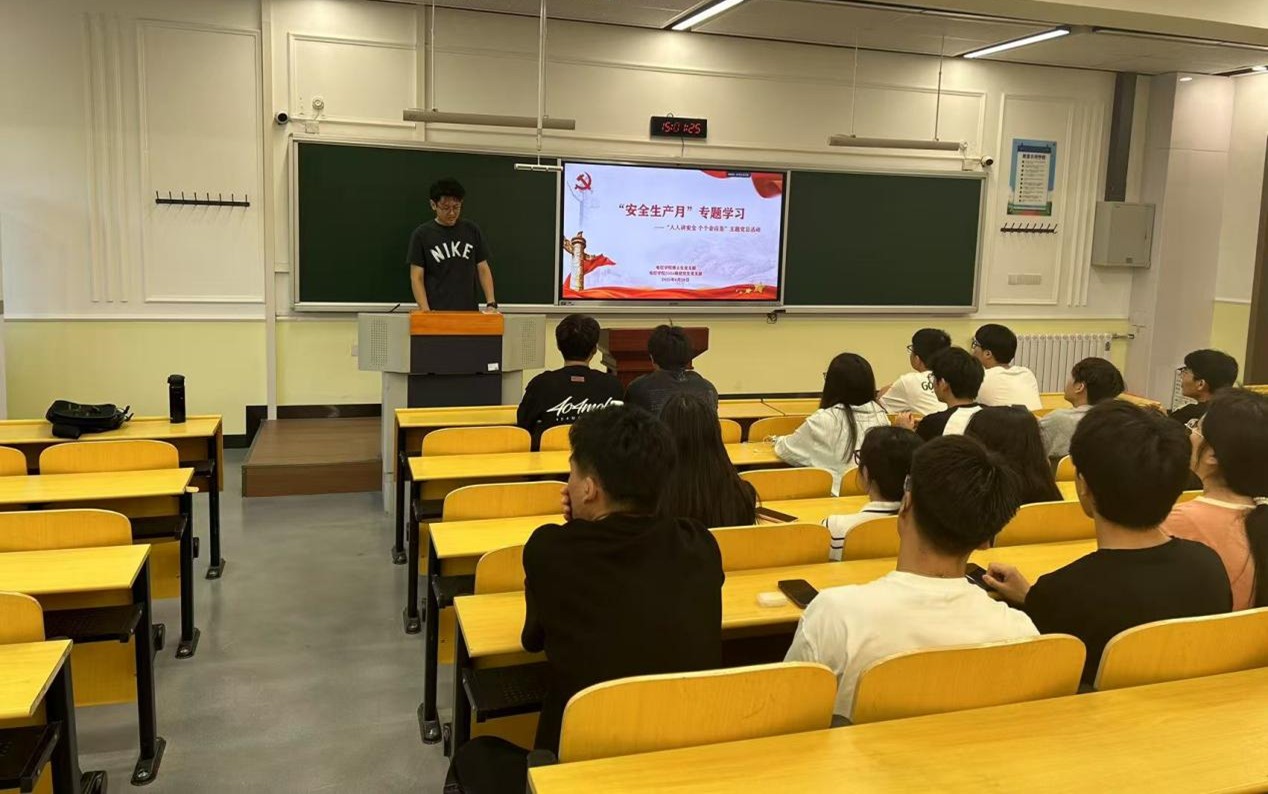 谢牧阳同学带领全体党员深入学习了习近平总书记关于安全生产的重要指示精神和相关法律法规,强调安全生产法律法规是国家意志的集中体现,是践行习近平总书记“人民至上、生命至上”理念和“发展决不能以牺牲人的生命为代价”这一不可逾越红线的法治保障,是守护人民群众生命财产安全和社会大局稳定的根本基石。