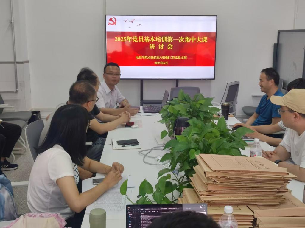 为深入学习贯彻习近平总书记关于教育的重要论述,巩固拓展学校党员基本培训集中大课成效,交通信息与控制工程系党支部6月23日下午在工程训练中心三楼会议室召开了2025年党员基本培训第一次集中大课研讨会。会议由代亮教授主持,全体党支部教师党员参加了此次会议。