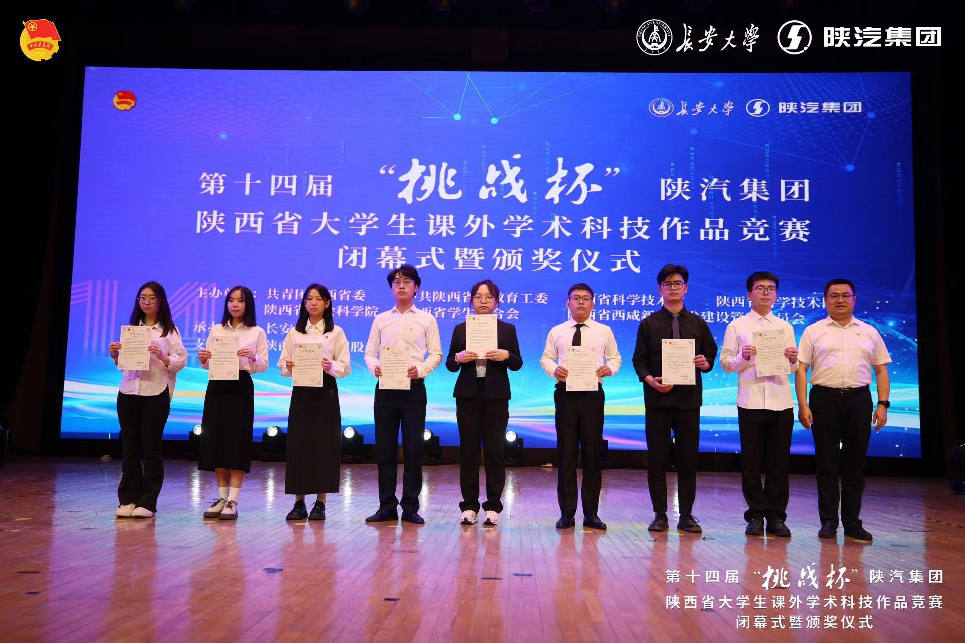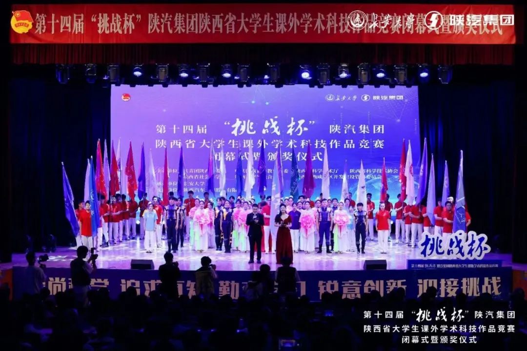 5月20日下午,由团省委、省委教育工委、省科技厅、省科协、省社会科学院、省学联、西咸新区管委会共同主办,beat365英国官网网站承办的第十四届“挑战杯”陕汽集团陕西省大学生课外学术科技作品竞赛闭幕式暨颁奖仪式在beat365英国官网网站举行。团省委书记徐永胜,beat365英国官网网站党委书记陈志坚,省教育厅二级巡视员高巍,省科协党组成员、副主席吕建军,省社会科学院党组成员、副院长王建康,团省委副书记刘洋,beat365英国官网网站党委副书记黎开谊,陕汽控股副总经理刘科强,西咸新区科技创新和新经济局党组书记、局长王斌等领导及省学联主席柳劲京出席闭幕式。各相关高校领导、团委负责人、参赛学生代表等共计千余人参加闭幕式。