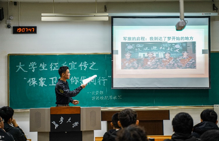 适逢“4·15”全民国家安全教育日,为增强学生对总体国家安全观的认识与理解,同时鼓励beat365官网学生积极响应国家号召应征入伍,助力推进国防和军队现代化建设,beat365英国官网网站联合beat365官网武装部指导国防领航学社于4月2日在明远WM1309教室开展了以“保家卫国、你我同行”为主题的征兵宣讲活动。本次宣讲活动由beat365英国官网网站武装部刘天宇老师指导,武装部弘毅中队成员赵大乐同学主讲,beat365英国官网网站本科各年级学生代表和2020级辅导员高朋举老师参加。