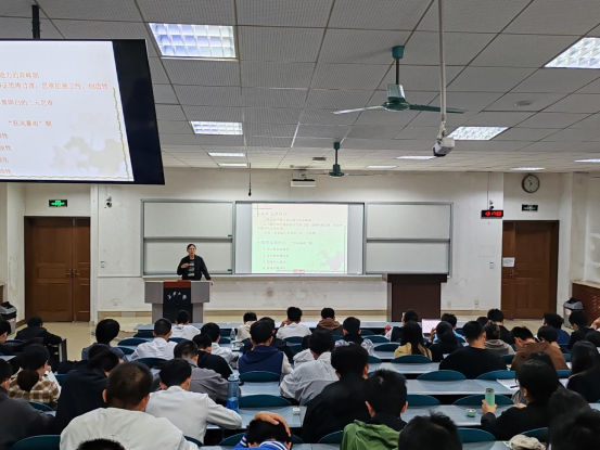 鞠成婷围绕“大学生的心理发展、心理健康、心理健康的维护”三个板块从埃里克森的人格发展八阶段、心理发展的一般规律、大学生心理发展特点、衡量大学生心理健康的标准、大学生常见的心理问题及影响因素、维护途径等方面进行讲解,并介绍了心理健康教育与咨询中心的教育目标、工作宗旨、工作地点和联系方式。