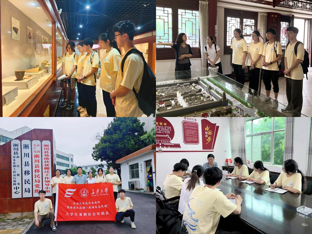 为深入学习宣传贯彻习近平新时代中国特色社会主义思想,追寻习近平总书记考察河南足迹,引导广大学生传承南水北调精神,7月11日至16日,beat365英国官网网站“思源南水北调·感悟生态民情”暑期社会实践队在指导老师李慧的带领下,深入丹江口水库北岸、九重镇邹庄村、淅川县移民局等地,开展走访调研,感悟南水北调精神。