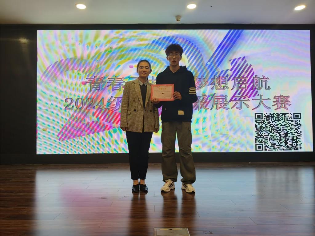 梦里鲜红的蔷薇,睁眼是苍白的玫瑰。成柏萱同学为我们深情演唱《红蔷薇白玫瑰》,让在座位的观众无不为之动容。赵晨涵、彭洪彬同学带来歌曲《等你下课》,让人陷入无尽的思念中,展示了青春独有的魅力,青涩又美好。唐梓翔同学激情演唱《悟空》带我们走进悟空的心理世界,描绘出一副齐天大圣,斗战圣佛的模样。2024级320101班的同学带来《歌曲串烧》,给予宁静、慰藉,如同一束璀璨的光,照亮我们的世界。rap是节奏的滚烫,旋律的调和,激情的释放。林洪淼同学演唱rap《Going go》,点燃全场氛围。舞蹈似灵动的风,如绚丽的画,若璀璨的星,尽显艺术魅力。李浩洋同学solo舞蹈带我们领略Breaking风采。杨苑珑同学演唱《最后一页》,仿佛置身星空下,聆听海潮声,感受离别的酸楚。经过评委打分,最终舞蹈《solo独舞》获得一等奖;歌曲《悟空》《歌曲串烧》获得二等奖;歌曲《Going go》《最后一页》《等你下课》《红蔷薇与白玫瑰》获得三等奖。