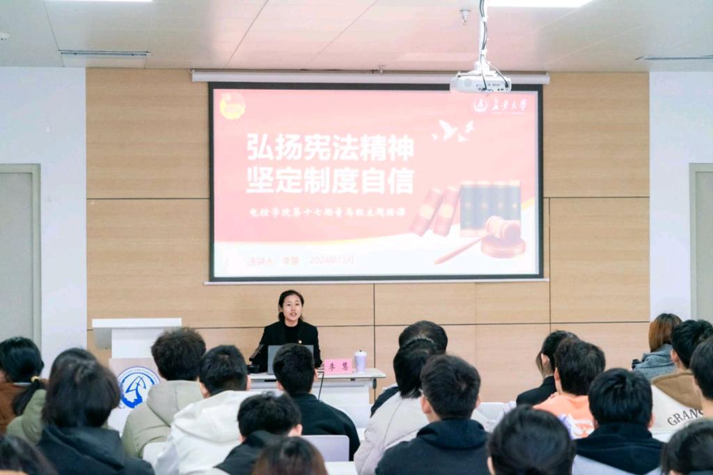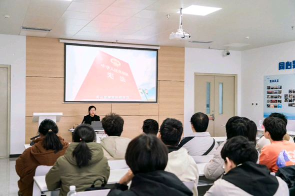 为深入学习宣传贯彻党的二十大精神,大力弘扬宪法精神,提升法治意识和法治素养,beat365英国官网网站第十七期青年马克思主义者培养工程(青马班)于12月5日下午在北校区明德园智通大厦216会议室开展了“弘扬宪法精神·坚定制度自信”主题团课。此次团课由院团委书记李慧主讲,第十七期青马班全体学员参加。