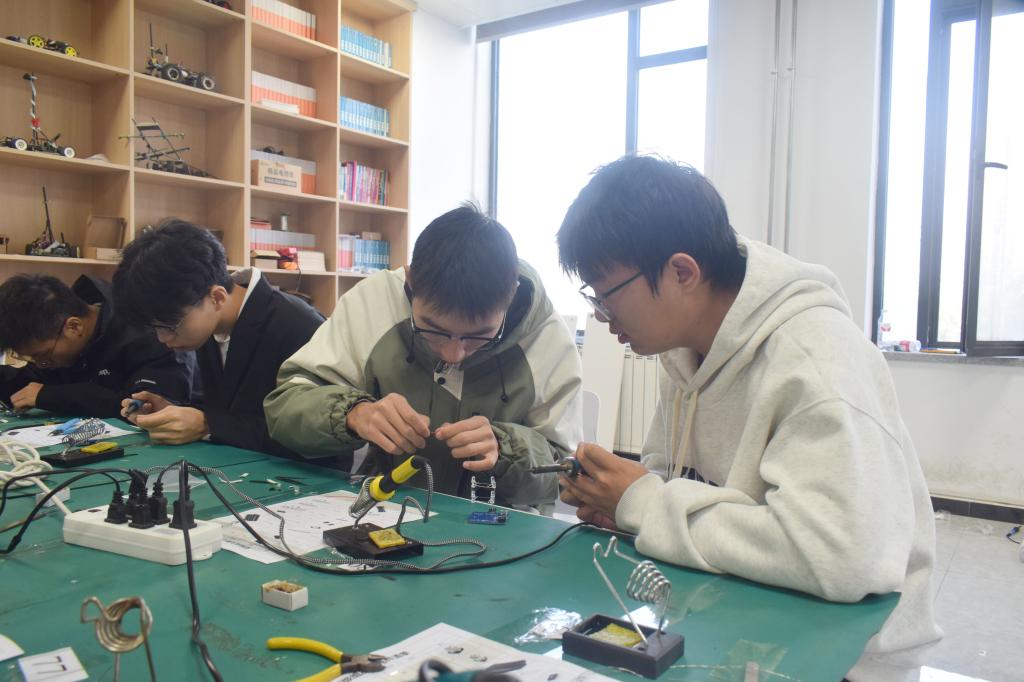 技术交流环节,工作人员现场演示焊接流程,讲解关键步骤与易错点。校、院各科协成员围绕焊接技术在学科竞赛与工程实践中的应用展开深入交流。