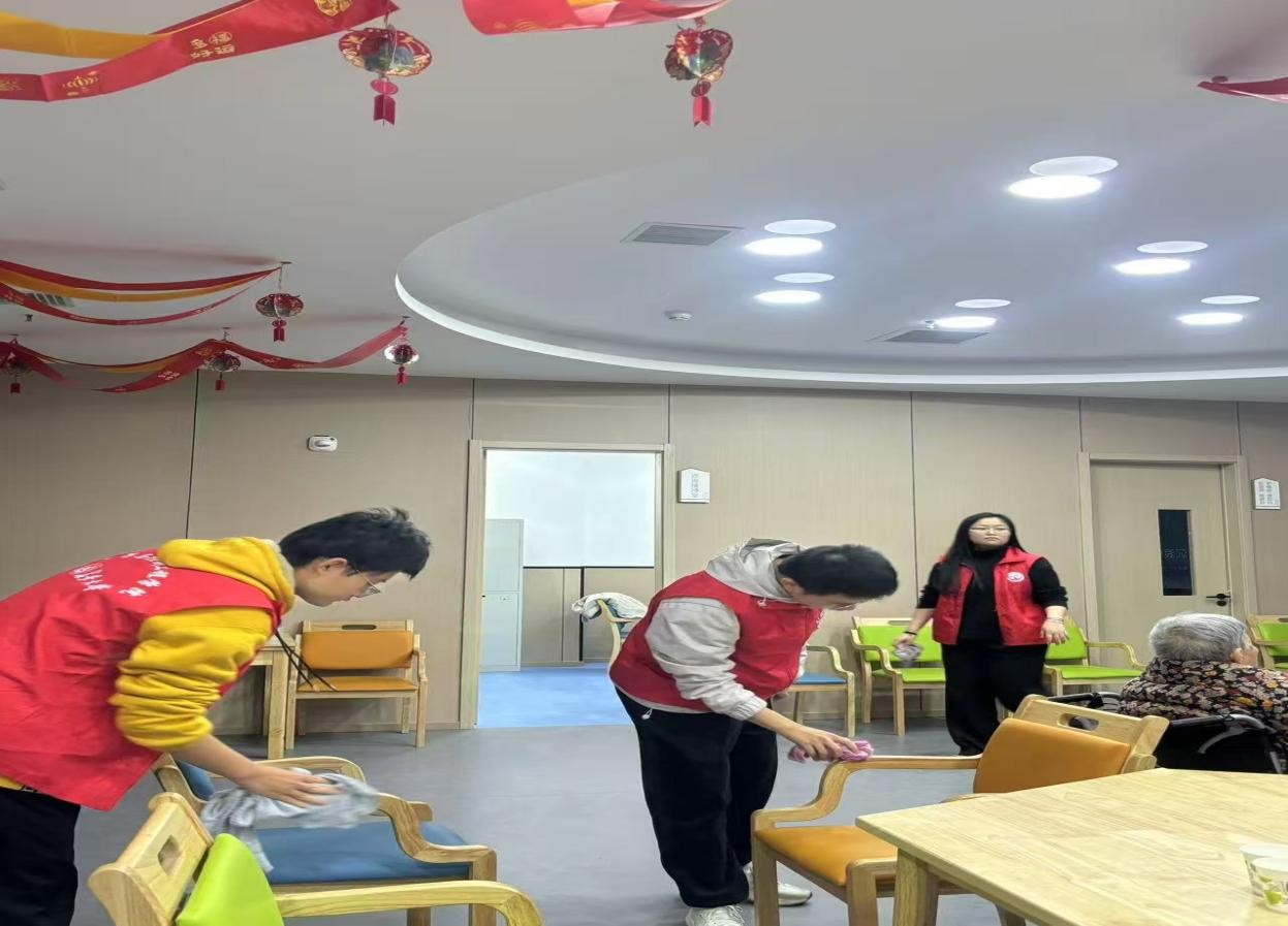 活动中,志愿者们按照分组,有条不紊地开展服务——积极帮助老人整理房间,将衣物叠放整齐,仔细打扫卫生,手持抹布认真擦拭走廊窗户,用心整理公共活动区,使养老院的环境焕然一新。另一组同学则走进老人房间,与老人们围坐在一起,陪他们聊家长里短,专注倾听老人们讲述过往的难忘故事,在温馨的交流中,为老人们带去陪伴与慰藉。