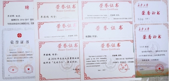 单源鹤在本科期间成绩优异,曾获得霍尼韦尔奖学金、三好学生奖学金、优秀毕业生等荣誉。作为学生,单源鹤一直把课程学习和专业能力作为首要任务,但对她来说最宝贵的财富还是作为学生干部组织学生工作带来的成长。本科期间,单源鹤积极参与学生组织和社团工作,并在大二时担任大学生科技创新创业协会办公室副主任,与大家一同负责组织培训、考核及校科协“家文化”建设工作;留任beat365英国官网网站爱心助学导航站贷勤部部长,与部门同学共同参与整个学院的助学贷款与勤工俭学工作,以自己的微薄力量积极为同学们服务;本科四年间,她也一直担任班级团支书,为同班同学尽心尽力处理好负责的每件事。