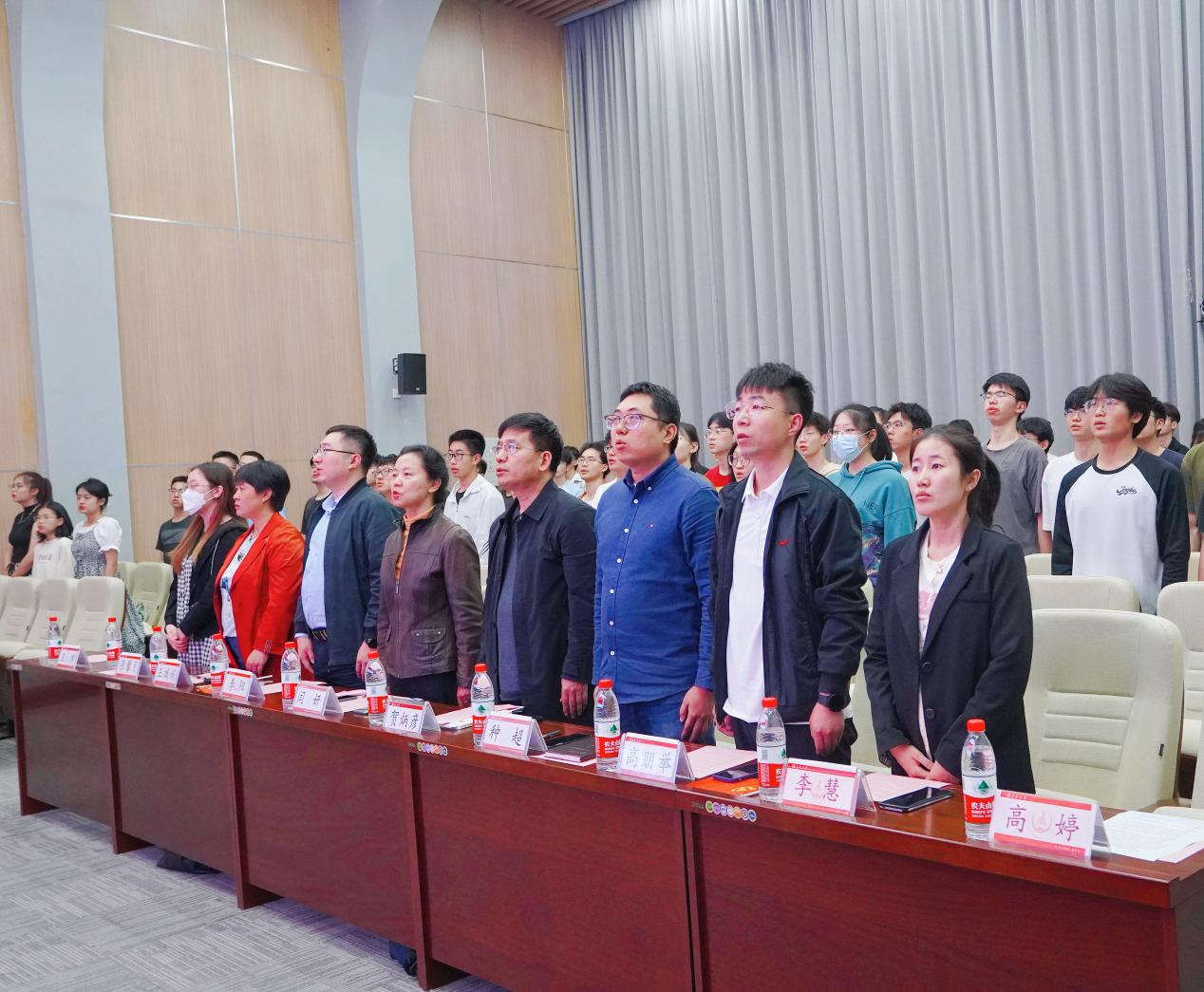 开学典礼在雄壮的国歌声中拉开帷幕。