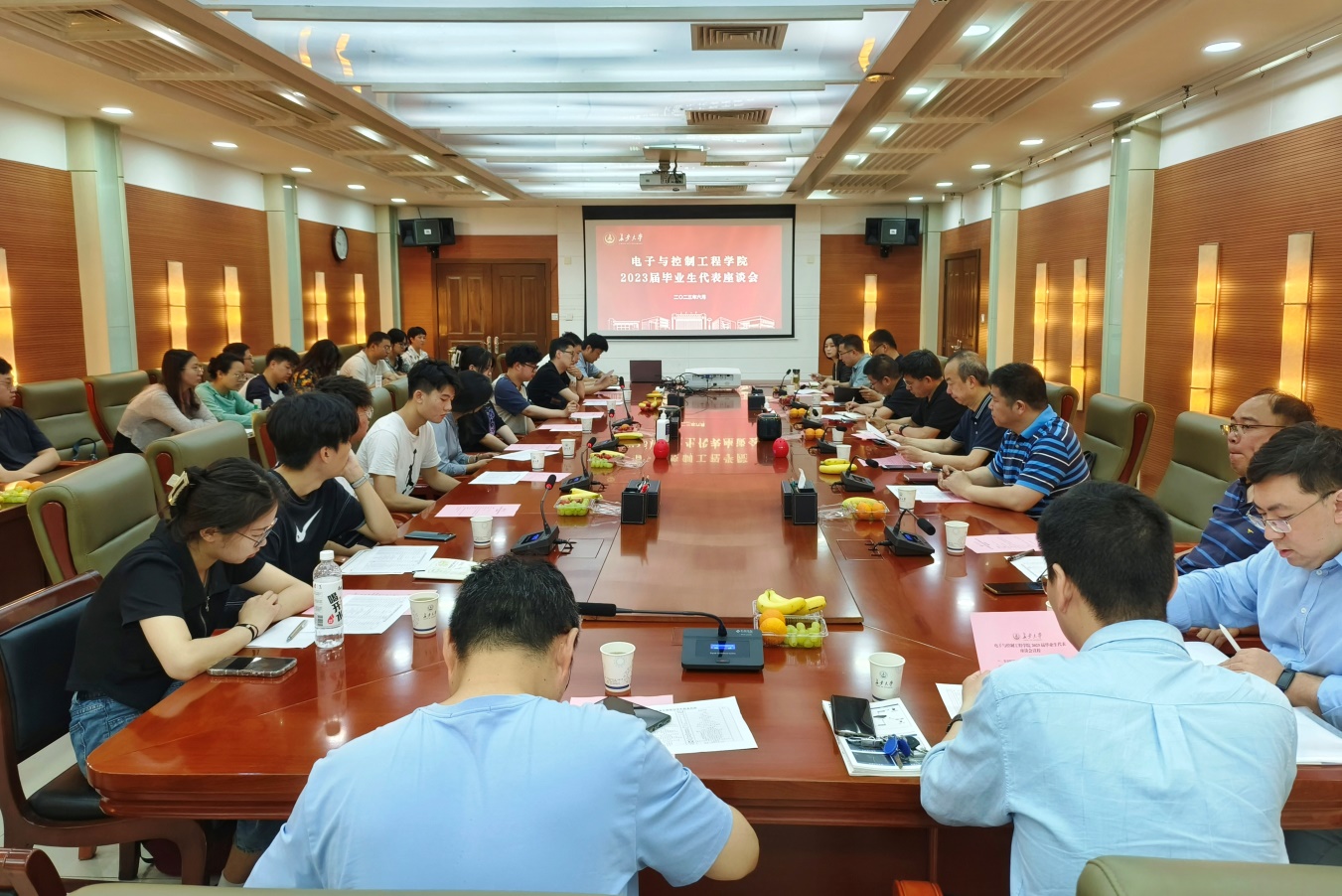 春风十里尽芳菲,踔厉奋发再前行。6月19日上午,beat365英国官网网站在北辰楼会议中心第二会议室召开2023届毕业生代表座谈会,全体院领导、各系部室主任、学科科研研究生培养与管理主管、毕业班辅导员和本科生、研究生毕业生代表参会。座谈会由学办主任高婷主持。