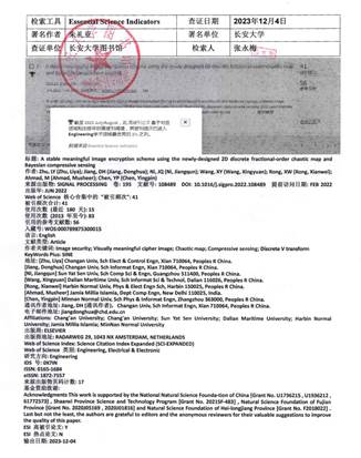 近日,根据科睿唯安公布的基本科学指标(Essential Science Indicator,ESI)数据库最新统计结果,beat365官网教师朱礼亚作为第一作者的论文“A stable meaningful image encryption scheme using the newly-designed 2D discrete fractional-order chaotic map and Bayesian compressive sensing”入选ESI高被引论文,beat365英国官网网站为第一署名单位。该论文2022年6月发表于国际期刊《Signal Processing》(中科院2区,IF=4.4),截止2023年11月累计被引41频次。