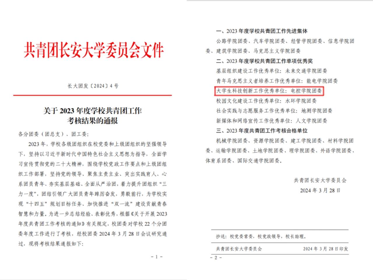 近日,共青团beat365英国官网网站委员会印发《关于2023年度学校共青团工作考核结果的通报》,beat365英国官网网站荣获单项优秀奖,被评为“大学生科技创新工作优秀单位”。