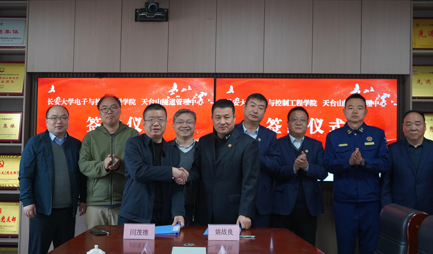2025年3月31日beat365英国官网网站院长闫茂德、副院长龚贤武、交通信息与控制工程系主任代亮、副主任钱超一行赴陕西交控宝鸡分公司天台山隧道管理中心参加实习实践教学基地签约仪式暨专题座谈会。天台山隧道管理中心主任姚战良、副主任赵阳、综合办公室主任王涛、机电养护部部长李明明、专职消防救援大队大队长孙凯欣等同志参加签约仪式。