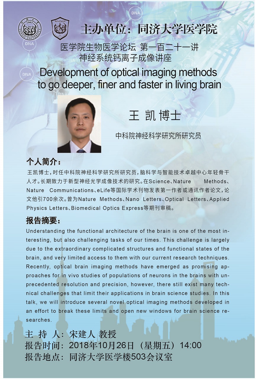 报告1题目:Development of optical imaging methods to go deeper, finer and faster in living brain