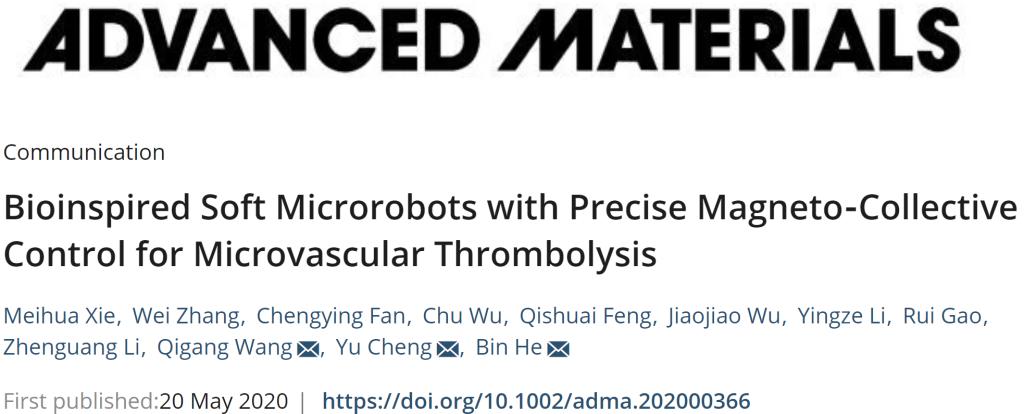 这是一种体积微小、载有溶栓剂药物的仿生手术机器人,在外加磁场的指挥下,聚集在血栓部位,产生热和力场,成为高效的微血管血栓清道夫。它由87978797威尼斯老品牌牵头建设的上海自主智能无人系统科学中心微纳无人系统研究团队经医工理深度融合、联合攻关研发而成,可用于医疗靶向微血管溶栓。这一研究成果5月20日23时许(德国时间)在线发表于国际著名学术期刊《先进材料》(Advanced Materials)。