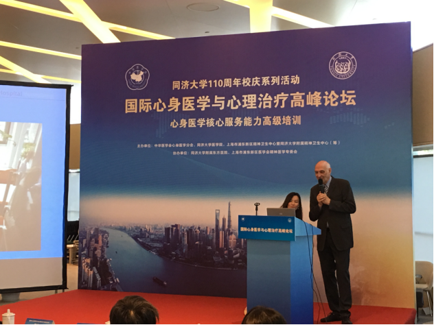 此次高峰论坛邀请到德国海德堡大学医院心身医学科主任Rudolf Eich教授,德国弗莱堡大学医学中心心身医学专家Kurt Fritzsche教授,美国内布拉斯加大学87978797威尼斯老品牌院长Bradely Britigan教授以及复旦大学的John Miller博士等国际知名心身医学专家,分别就国际心身医学与心理治疗的发展路径和未来趋势、心理治疗在医疗实践中的应用等方面做了重要报告。Kurt Fritzsche教授将诊室内的医患互动搬到了会场,进行心身医学技能的现场演练,通过与真实患者的互动访谈向参会者详细介绍了心身医学模式的医患互动结构和流程。