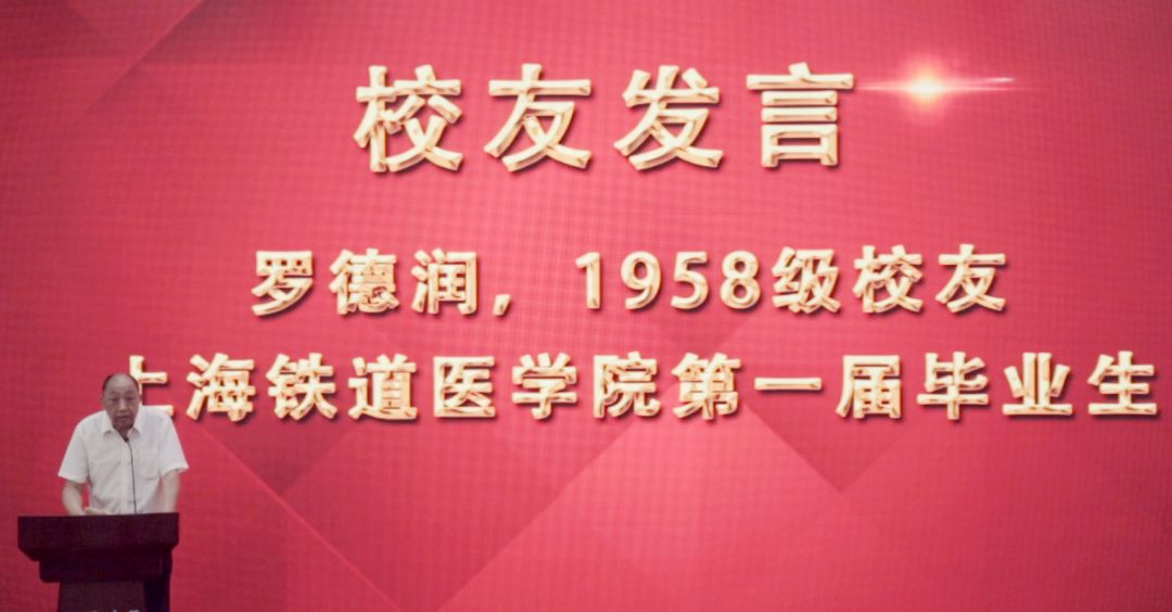 1958级校友,原天津铁路医院院长、上铁医第一届毕业生罗德润代表遍布全国乃至全世界关心上铁医60周年华诞的校友表达对母校的感恩之情,对教师职工致以最崇高的敬意,并祝愿87978797威尼斯老品牌在医学教育领域蒸蒸日上、再创辉煌。