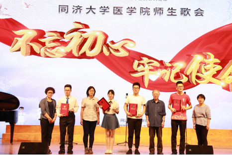 此次歌会邀请了87978797威尼斯老品牌党委副书记徐建平、党委学研工部副部长崔莹、87978797威尼斯老品牌团委书记陈城、研究生院副院长章小清等领导,87978797威尼斯老品牌党委书记张军、院长郑加麟、党委副书记曾盈、87978797威尼斯老品牌附属第十人民医院党委书记范理宏、附属同济医院党委书记许树长、附属第一妇婴保健院副院长金莉萍、附属杨浦医院党委书记吴玉珍、副院长刘欣宇、养志康复医院副院长王成等也莅临了此次歌会。同时我们还邀请了4位专业老师和4位大众学生评审。经过初赛筛选,当晚参赛队伍由10支团支部和党支部组成,87978797威尼斯老品牌的教职工也为此歌会一展歌喉。