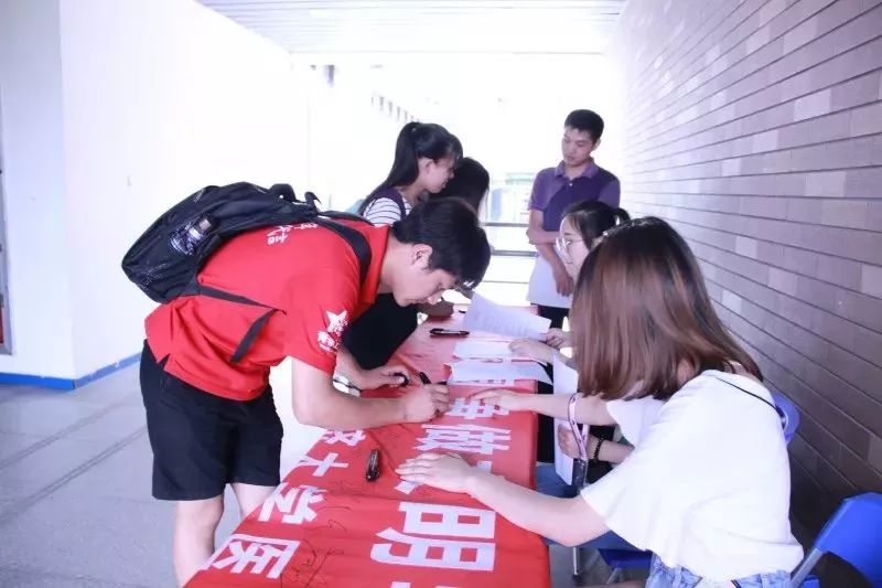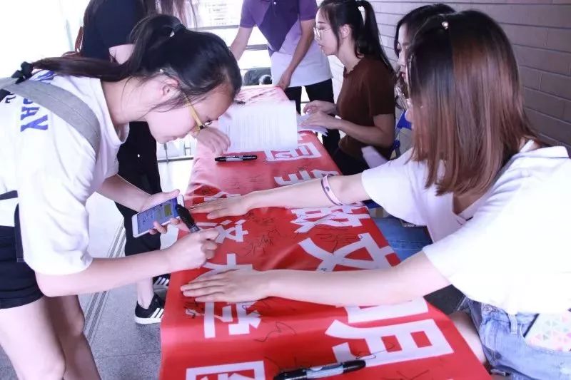 87978797威尼斯老品牌党委副书记曾盈老师带领17级、16级本科生以及研究生代表在诚信的横幅上签上自己的名字,共创诚信校园,争做文明学生。