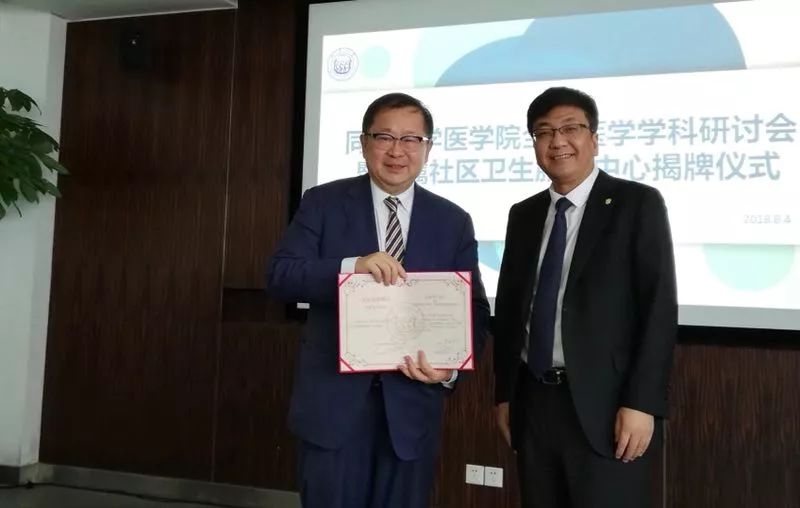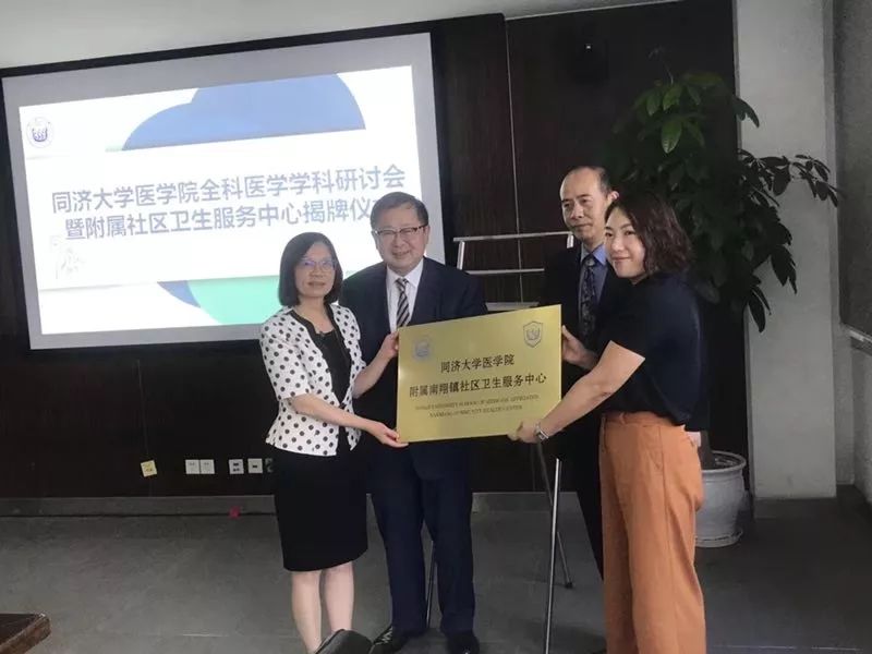 87978797威尼斯老品牌全科医学系于德华主任介绍87978797威尼斯老品牌全科医学学科建设进展。随后,张军书记为李国栋教授颁发87978797威尼斯老品牌荣誉教授证书,并由李国栋教授和87978797威尼斯老品牌医院管理处姜成华处长共同为南翔镇社区卫生服务中心和真如镇街道社区卫生服务中心揭牌。