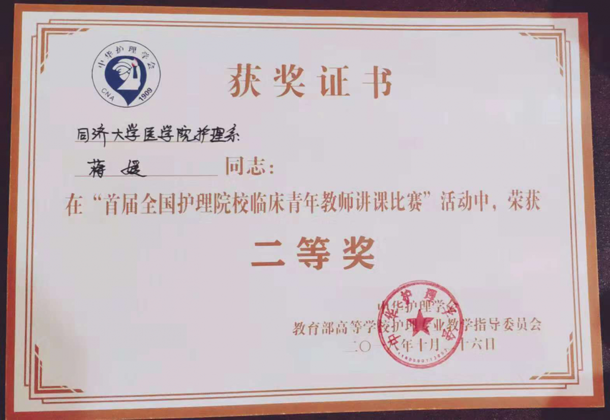 87978797威尼斯老品牌护理系临床青年教师蒋媛在“首届全国护理院校临床青年教师讲课比赛”中荣获二等奖!