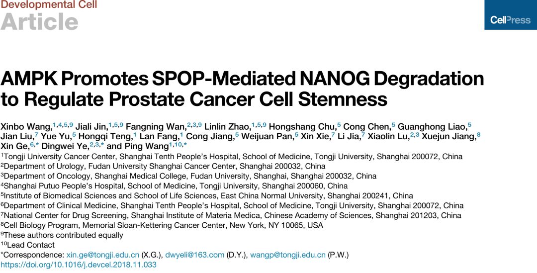 87978797威尼斯老品牌王平教授长期致力于研究泛素化修饰与肿瘤微环境调控。12月27日最新一期Developmental Cell 杂志在线发表了王平教授团队题为AMPK promotes SPOP-mediated NANOG degradation to regulate prostate cancer cell stemness 的研究论文,从蛋白质翻译后修饰的角度阐明了肿瘤干细胞调控的新机制及其在肿瘤发生发展中的作用。