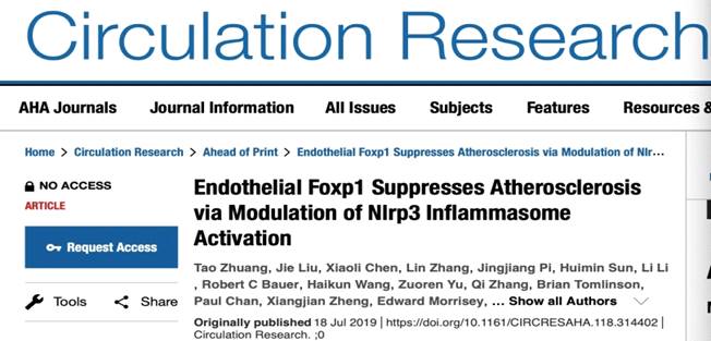 2019年7月18日,课题组再次传来捷报,心血管领域国际一流期刊《Circulation