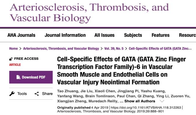 2019年4月4日,课题组在权威心血管期刊《Arterioscler