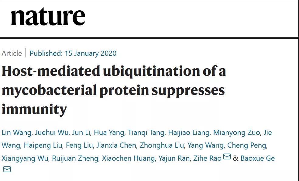 这篇论文的题目是“Host-mediated ubiquitination of a mycobacterial protein suppresses immunity”(《结核菌蛋白利用宿主泛素化系统抑制免疫》)。研究发现,当人体感染结核菌时,结核菌可以分泌出毒力因子Rv0222,而Rv0222利用人体的蛋白质修饰系统经过二次加工后,就可以有效抵抗来自人体免疫系统的攻击,从而导致结核菌从人体免疫系统中成功逃逸而致病。打个比方,该蛋白“狡猾”地利用人体自身的“矛”(蛋白分子)来攻击人体自身的“盾”(免疫系统),从而躲过了人体免疫系统的攻击,最终成功感染导致结核病。