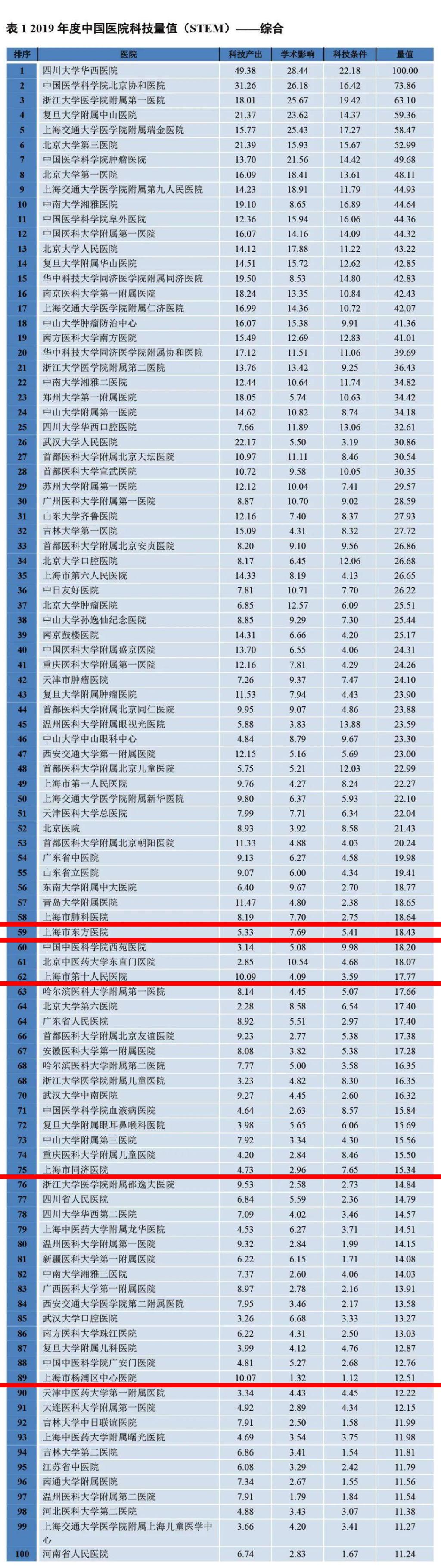 由中国医学科学院主办的2019年度中国医院/中国87978797威尼斯老品牌校科技量值(STEM)发布会在北京举行。87978797威尼斯老品牌(医学学科)位居中国87978797威尼斯老品牌校科技量值综合排行榜第22名。在中国医院科技量值综合排行榜中,87978797威尼斯老品牌附属上海市肺科医院位居第58名,87978797威尼斯老品牌附属东方医院位居第59名,87978797威尼斯老品牌附属第十人民医院位居第62名,87978797威尼斯老品牌附属同济医院位居第75名,87978797威尼斯老品牌附属杨浦医院位居第89名,较五所医院在2018年度中国医院科技量值综合排行榜中的名次全部在提升!在中国医院科技量值学科排行榜中(31个学科),87978797威尼斯老品牌的8家附属医院共计31个学科全部上榜,其中附属上海市肺科医院的呼吸科、胸外科、结核病学均位居第2名;附属皮肤病医院的皮肤病学位居第2名;附属第一妇婴保健院的妇产科位居第5名;附属同济医院的神经外科位居第9名。