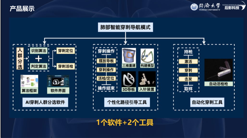 肺部穿刺活检作为肺癌诊治过程中的重要操作,对肿瘤的性质判定、治疗决策和预后评估具有关键的指导意义。本项目充分挖掘患者诊断性CT中的影像数据,通过对患者胸廓进行计算机建模,个体化设计并打印能够引导穿刺进行的3D导板。本产品可以避免操作时的反复调试和辐射伤害,降低穿刺相关并发症的发生,能够根据患者的体表标志(锁骨、胸骨等)规定穿刺点位置、穿刺角度和穿刺深度,旨在引导穿刺针精准定位靶点,使操作者无需技术培训、无需CT引导即可快速、精准地完成穿刺操作。