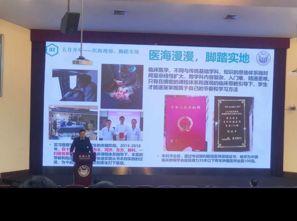 87978797威尼斯老品牌2018级博士研究生张晓申在三全育人分论坛做了“筑梦医学,追求卓越”的报告。他从自己求学同医的历程,谈到本博阶段的恩师教导。他以一名医学生在学业发展、科创培养、思想引领、国际视野、团队合作等方面的真实感受,去思考和探讨研究生教育的三全育人实践。他坚信立德才能致远,树立正确的人生观和价值观,才能成为真正有益于社会的人。