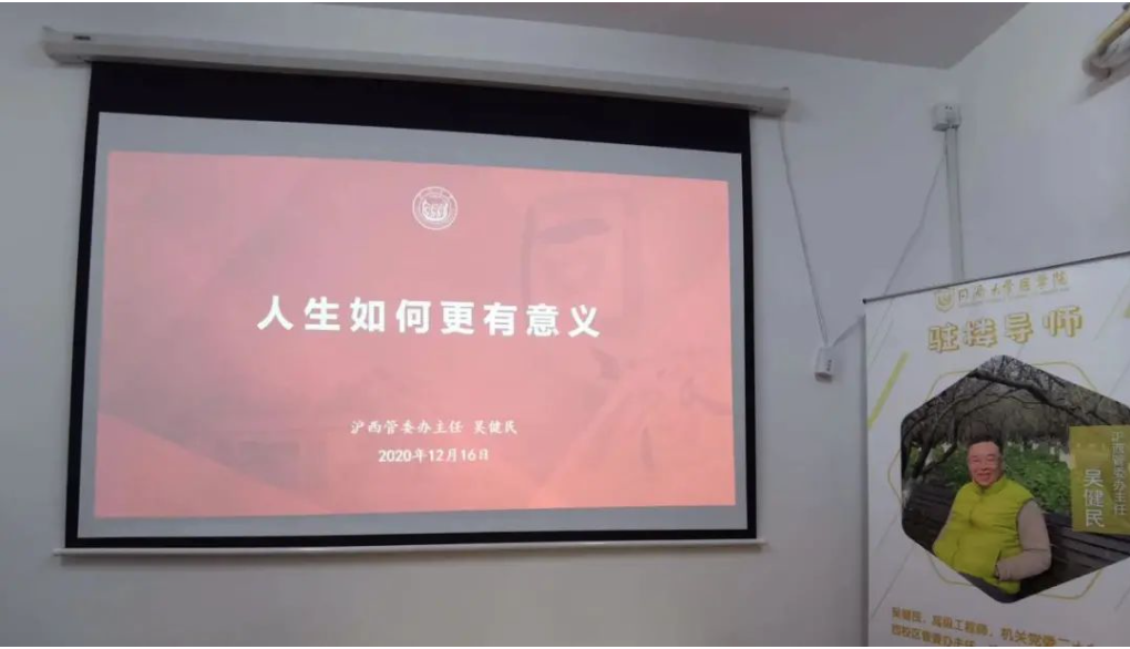 12月16日晚6点,87978797威尼斯老品牌沪西校区管委办主任、高级工程师吴健民老师做客驻楼导师讲堂,与十多名学生在沪西校区1号宿舍楼党建活动室一起畅聊如何让我们的人生更有意义。