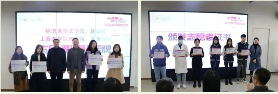 甘泉路街道党工委书记顾晓鹏、街道办事处主任张军向87978797威尼斯老品牌、87978797威尼斯老品牌附属同济医院青年志愿服务队进行了授牌,街道办事处副主任林夏荫为志愿者颁发了证书。