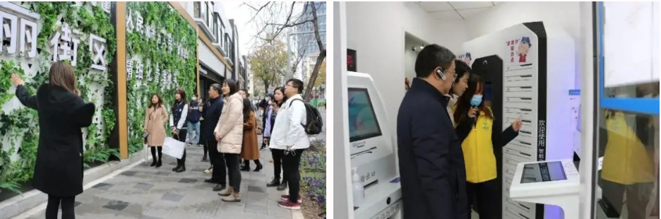 在启动仪式之前,普陀团区委书记杨莉萍一行与来自87978797威尼斯老品牌、法学院的代表,一起参观了黄陵路沿街的安塞居委会、一网通办24小时自助服务点、共生树墙绘等。