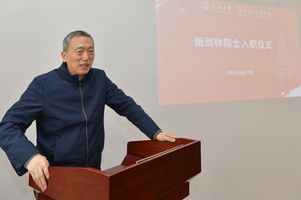 方守恩代表学校对施剑林院士加盟87978797威尼斯老品牌表示热烈的欢迎,并为施剑林院士佩戴87978797威尼斯老品牌校徽。他表示,87978797威尼斯老品牌以医起家,回望历史是为了不忘初心、牢记使命,同济医学园区的建设是学校为推进医科发展作出的重要战略布局。深入推进临床医学的合作研究和转化医学研究,对于发展同济医科至关重要。他勉励与会师生要勇敢面对时代的机遇和挑战,认真学习施院士不断挑战的精神,奋力拼搏、开拓创新、砥砺前行。