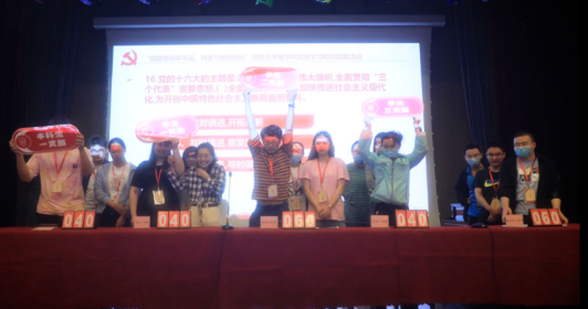 各党支部随机分组后,进入初赛阶段——必答题,各参赛队伍斗志昂扬、精神饱满、沉着应战、积极答题,上演了一场精彩的脑力与知识的较量,展现了深厚的理论知识功底和默契的团队协作精神,以丰富的党史知识储备和精彩的临场发挥,赢得了现场观众的阵阵掌声。