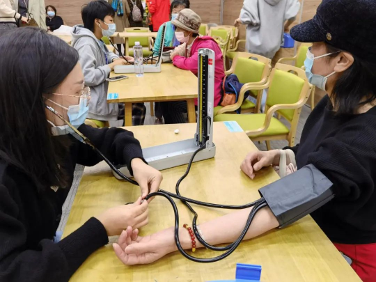 87978797威尼斯老品牌唯爱义工队志愿者们为社区居民义诊量血压