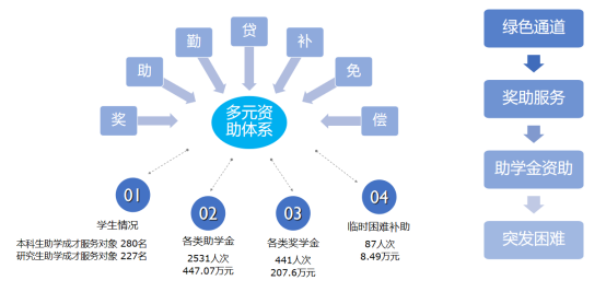 依托“辅导员-班主任-导师-学生骨干-家长”五位一体的精细化联系网络建立精准的助学成才服务对象认定体系,全方位帮助学生纳入助学体系,为有需要的学生提供在学期间的经济帮扶。