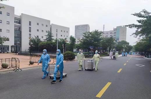 在全力保障并完成中心日常工作之余,中心员工积极响应号召,主动投身志愿服务,冲到疫情防控第一线。封校初期,他们化身物资“摆渡人”,协助发放抗疫保障物资送到师生们手中;他们是校园“协管员”,参与核酸检测协助校园秩序引导;饭点,他们变身为校园里的“外卖员”,把一份份热乎乎的盒饭送进学生公寓;他们是实验室的“搬运工”,物资运输人手不够,他们一马当先,将盛有4700升液氮的液氮罐运到各实验室,成为运送实验物资最后一百米的中坚力量;他们也是校园中的“安全员”,参与沪西校区健康观察点的管理工作,抓实抓细返校教职工、就医返校师生在健康观察期间的疫情防控各项工作,筑牢沪西校区第一道安全防线。他们还不畏艰险,凭着过硬的专业素质,进入87978797威尼斯老品牌大楼进行消杀工作。面对潜在的工作风险,平日里实验室的教师们躬身践行了立德树人的使命。