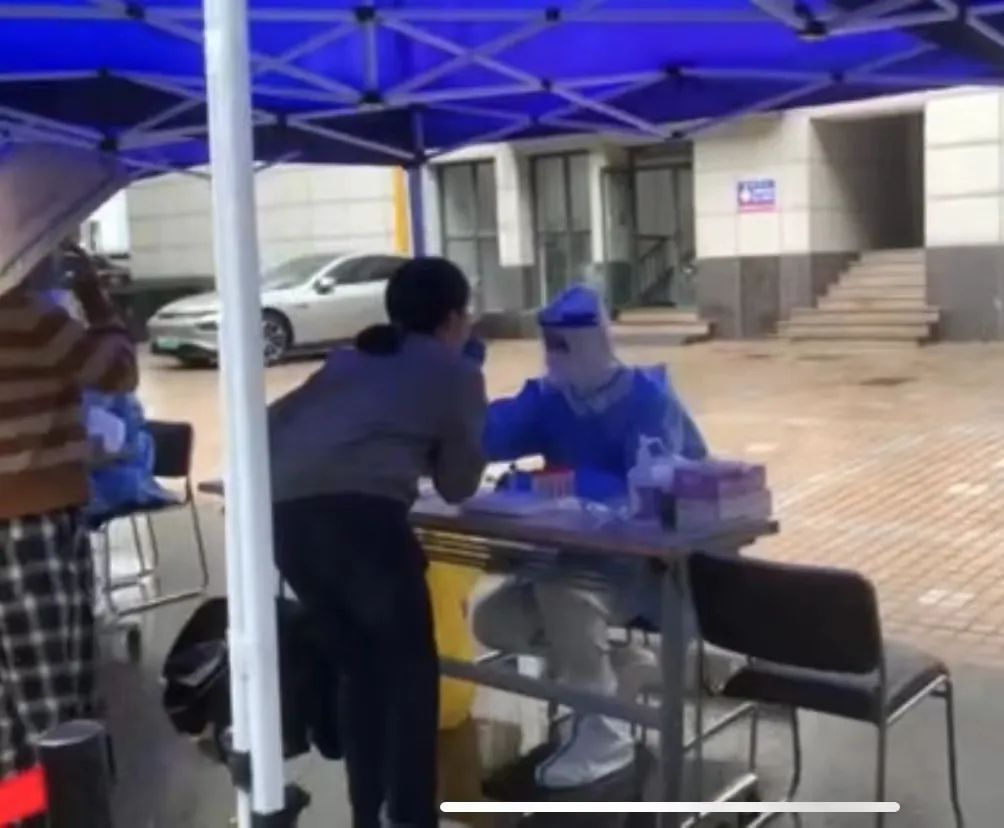 记得第一次园区内采样就是个下雨天,防护面屏上都是雾气,看东西比较费力,好在温度不高,需要找不同的角度去观察咽部情况。