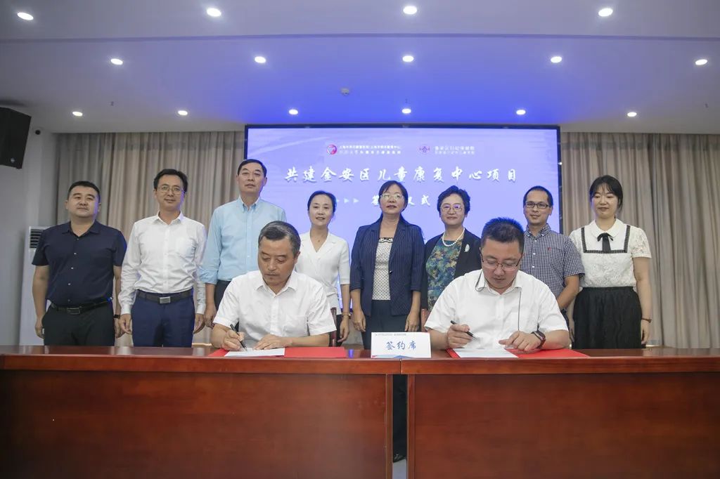 附属养志康复医院院长靳令经与金安区妇幼保健院院长卫功文代表双方医院签署了儿童康复中心项目合作共建协议。