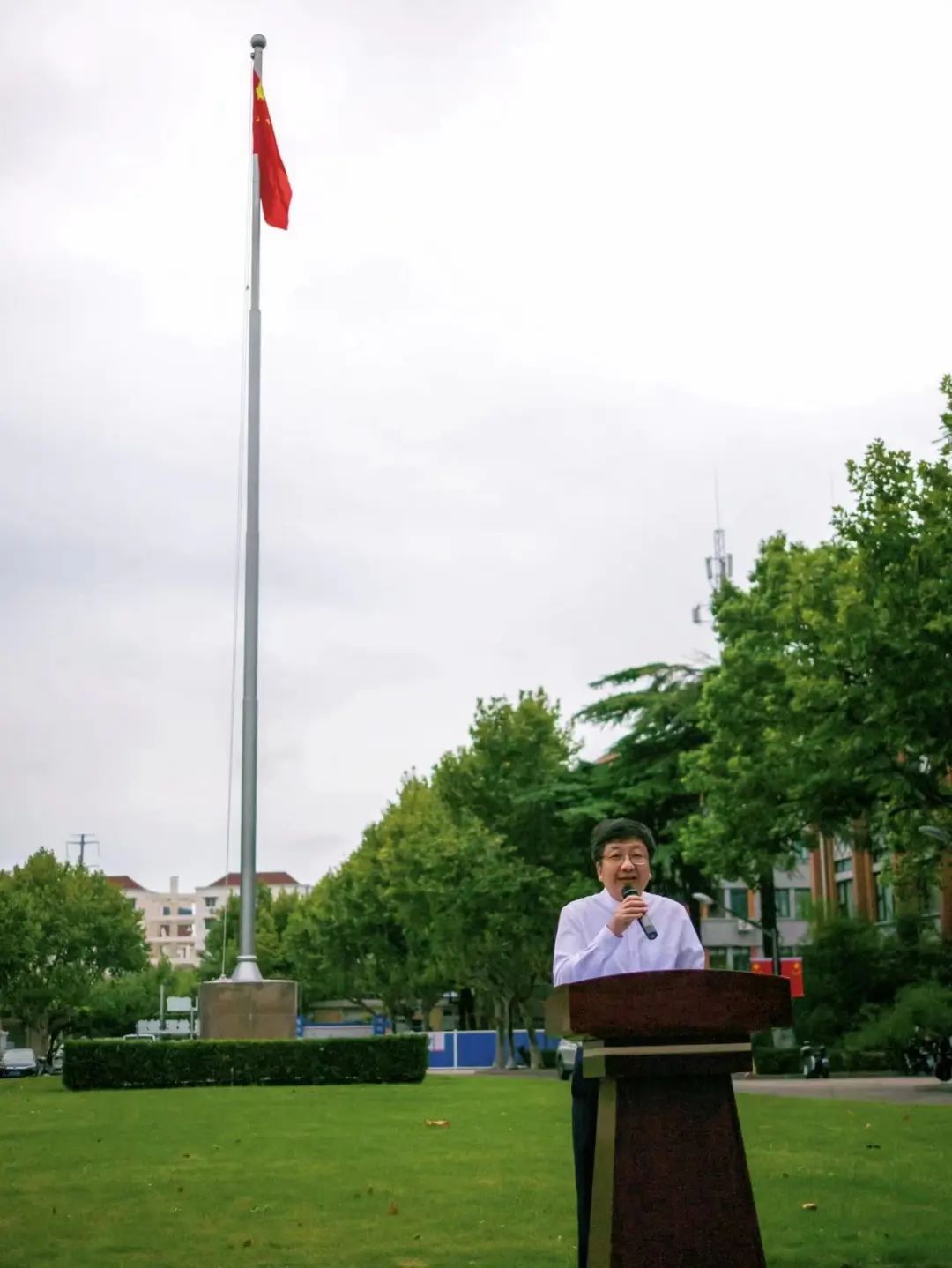 2021级研究生刘逸凡同学进行国旗下演讲。她号召同学们,发扬同舟共济的精神,以更加优异的成绩迎接党的二十大胜利召开,接好时代的接力棒,努力为祖国卫生健康事业贡献“同济力量”。