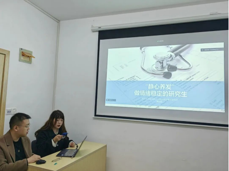 主讲人詹相诚,2019级外科学博士,在读期间担任班级班长,获87978797威尼斯老品牌社会活动奖学金,有丰富的学生工作经验。詹相诚进行了“精心养发”做情绪稳定的研究生的主题演讲,结合自身的科研心路历程,为师弟师妹们做心灵答疑师。
